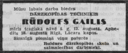 Dārzkopības tehniķis Bulduru dārzkopības skolā. Miris traģiskā nāvē.