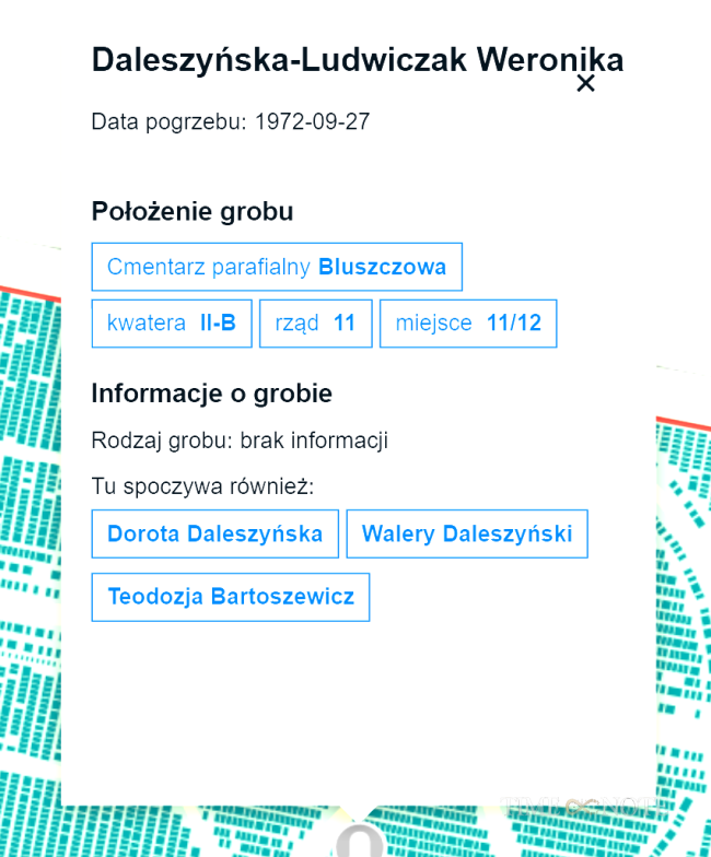 Weronika Daleszyńska-Ludwiczak z d. Daleszyńska ur. 2 lutego 1890 r. w Parafii Góra , w miejscowości Pławinek , zm. 27 września 1972 r. w Poznaniu .