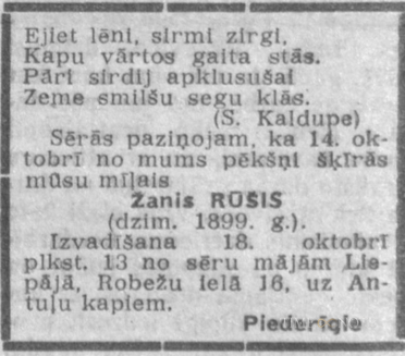 Izvadīts no sēru mājas Liepājā, Robežu ielā16.