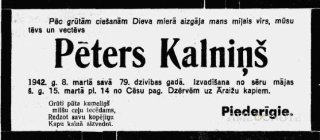 Izvadīts no sēru mājas Cēsu pagasta "Dzērvēm".