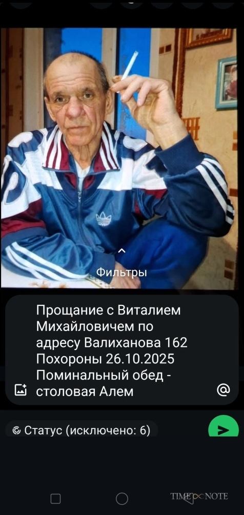 Жил в городе Ерейментау. Скончался сегодня 24 октября 2025 года. Похоронят 26 октября, поминки будут проходить в кафе Алем.