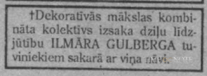Tad dzīve Slokā, vēlāk Rīgā. Darbs vadošos amatos - Rīgas rajona Sadzīves pakalpojumu kombināts, pēdējais Dekoratīvās mākslas kombināts.