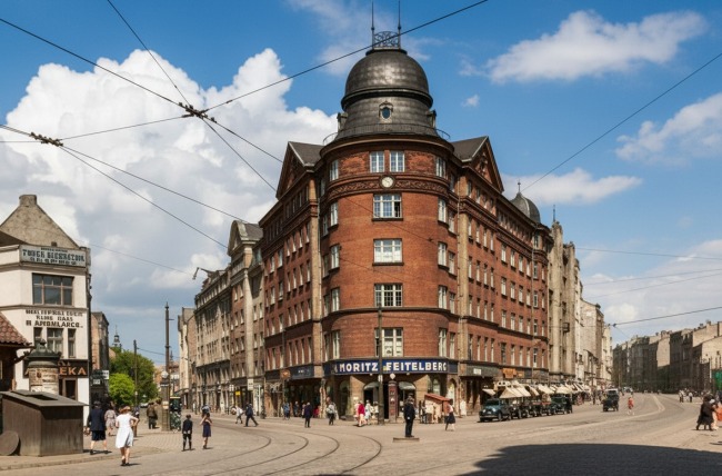 Centrā mūra īres nams ar veikaliem, kas celts 1913.-1914.g., arhitekts G. fon Tīzenhauzens; nams izdega ugunsgrēkā Otrā pasaules kara laikā, drupas vēlāk nojauktas.