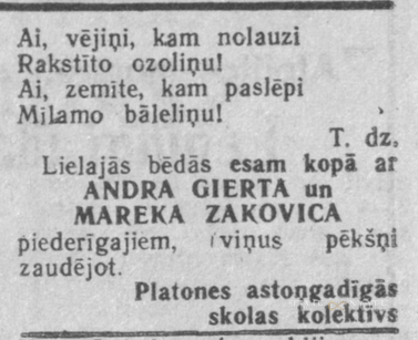 Platones astoņgadīgās skolas skolnieks. Miris traģiskā nāvē.