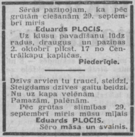 Dēls Tālivaldis Plocis.